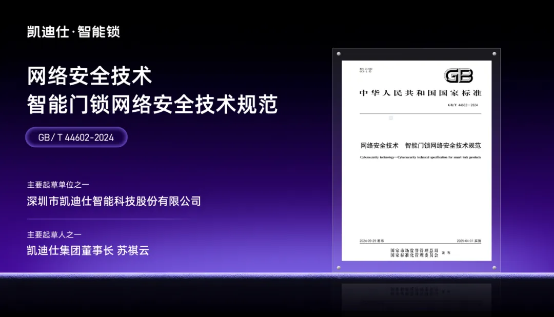 凱迪仕參與制定 “智能鎖行業(yè)最新國家標準”,為行業(yè)樹立標桿典范!