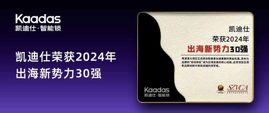 凱迪仕智能鎖榮獲“2024年出海新勢力30強”,以創(chuàng)新科技領航全球化征程!